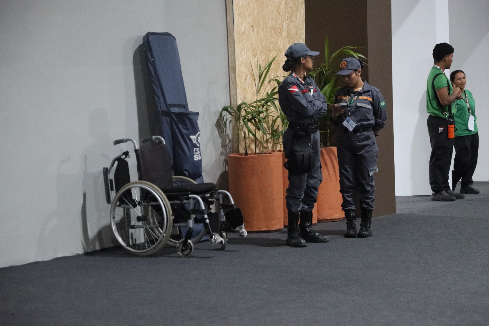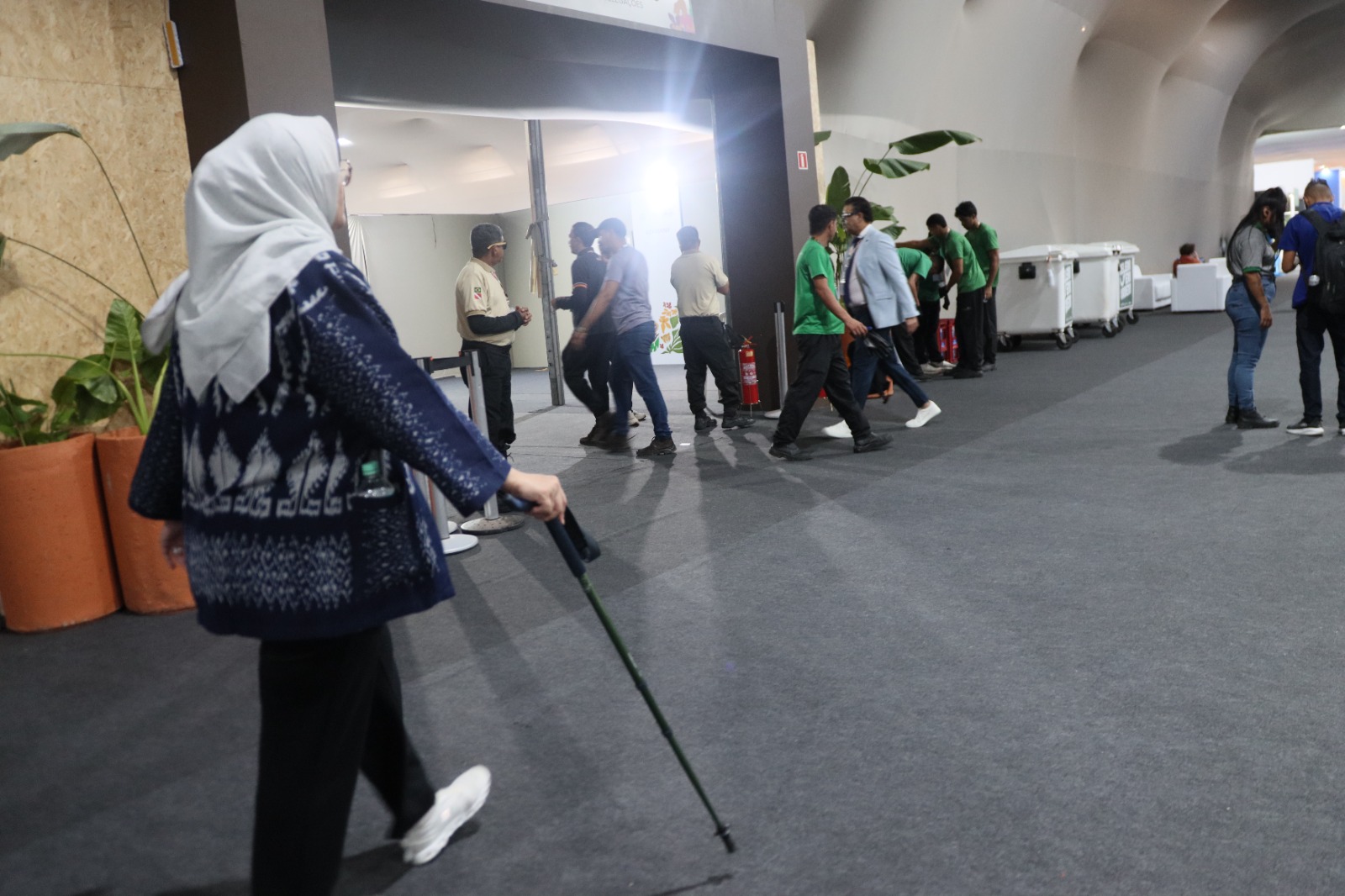 A equipe é formada por duas coordenadoras e cinco assessores distribuídos pelos espaços da conferência. Um deles é a pesquisadora Lianne Pimenta, doutoranda em Ciências Ambientais pela Universidade do Estado do Pará (UEPA), que atua como assessora de acessibilidade. Ela explica que o trabalho começou ainda antes da Cúpula de Líderes, fase preparatória da conferência, e envolve desde o empréstimo de equipamentos até o acompanhamento individual de participantes com deficiência ou mobilidade reduzida.