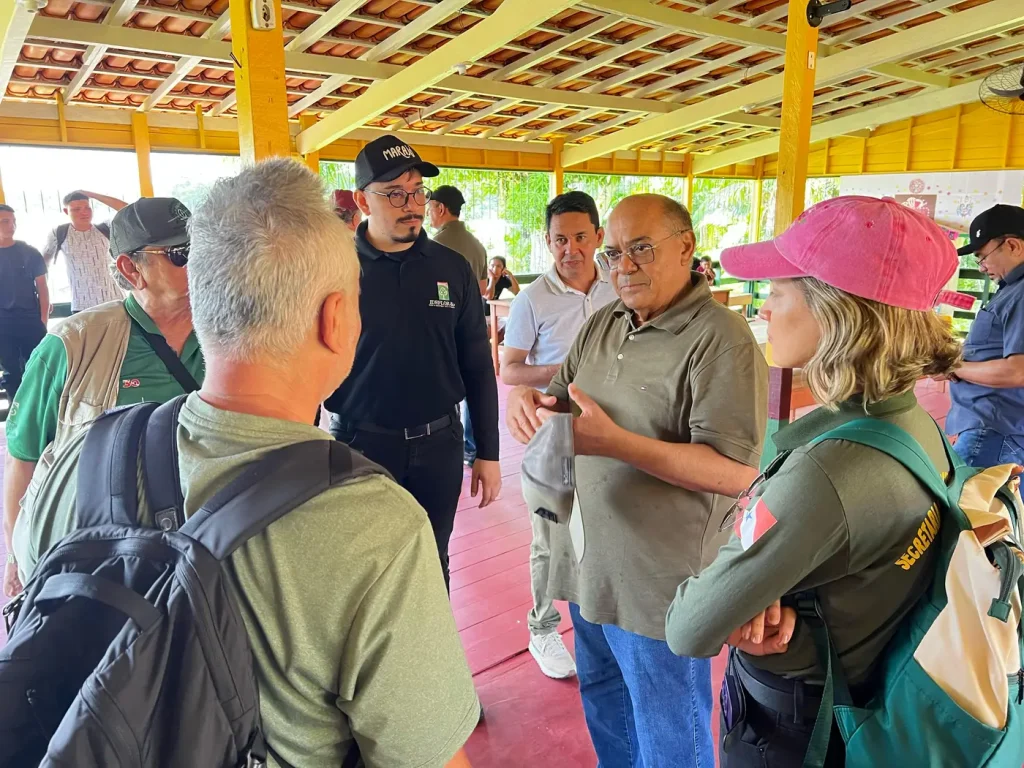 Durante a visita, os representantes das instituições ambientais também percorreram o rio Preto, um dos principais cursos d’água dentro do Parque. “A incursão saiu do Terminal Hidroviário de Afuá e percorreu o Parque Estadual Charapucu, proporcionando aos visitantes um contato direto com a biodiversidade do local. Além da área interna do Parque, exploramos os arredores, que incluem um assentamento agroextrativista do Incra, para avaliar a relação entre as comunidades e a UC. O trajeto teve algumas pausas estratégicas, incluindo a navegação pelo rio Preto, e o retorno a Afuá ocorreu por volta das 18h”, relatou o gerente da Região Administrativa do Marajó, Hugo Dias.