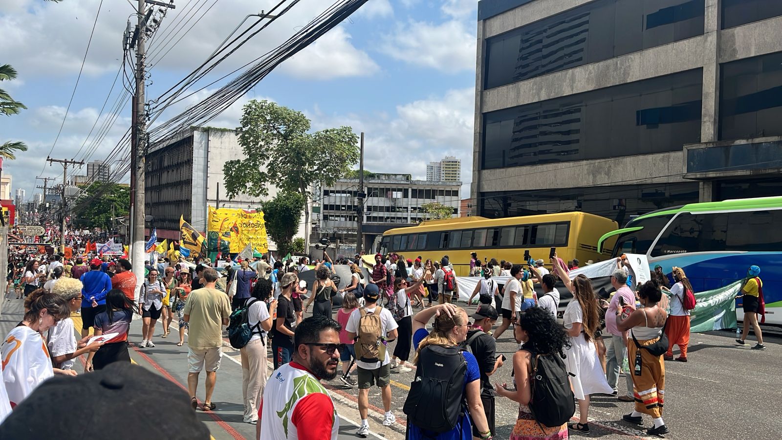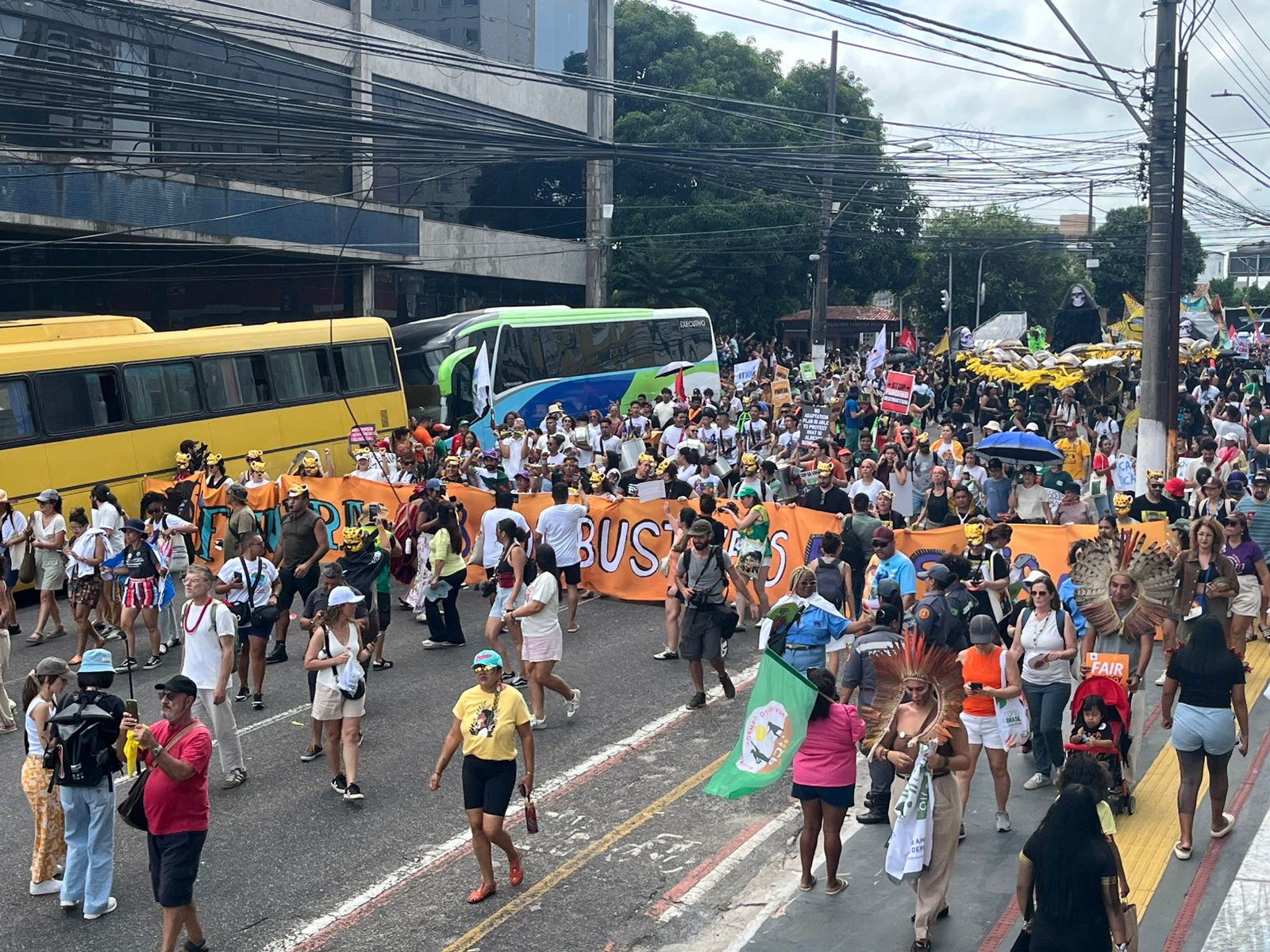 Andressa Ferreira/DOL – A Marcha Global pelo Clima, integrada à programação da Cúpula dos Povos na COP30, Conferência das Nações Unidas sobre Mudança do Clima, tomou as ruas de Belém como um dos atos mais simbólicos de mobilização social pelo enfrentamento da crise climática. Reunindo lideranças indígenas, movimentos sociais, organizações ambientais, trabalhadores, estudantes e diversas comunidades tradicionais, a marcha – que saiu do novo Mercado de São Brás – reforçou a urgência de medidas concretas para limitar o aquecimento global e proteger os territórios mais vulneráveis.