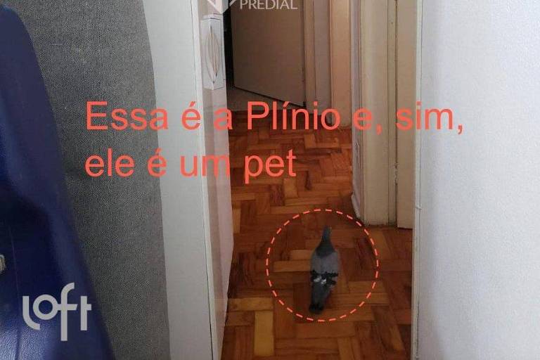 Foi por isso que Ana assustou-se com a repercussão do seu anúncio de venda de apartamento na internet. “Acharam que o pombo fosse da rua, mas o pombo é meu e eu quis que ele estivesse lá. Tem essa coisa que o pombo é sujo e transmite doenças. Na verdade, são as fezes dele”, disse Ana, enfatizando que Plínio está livre de qualquer enfermidade, já que não tem contato com outros animais, além dos cães da casa.