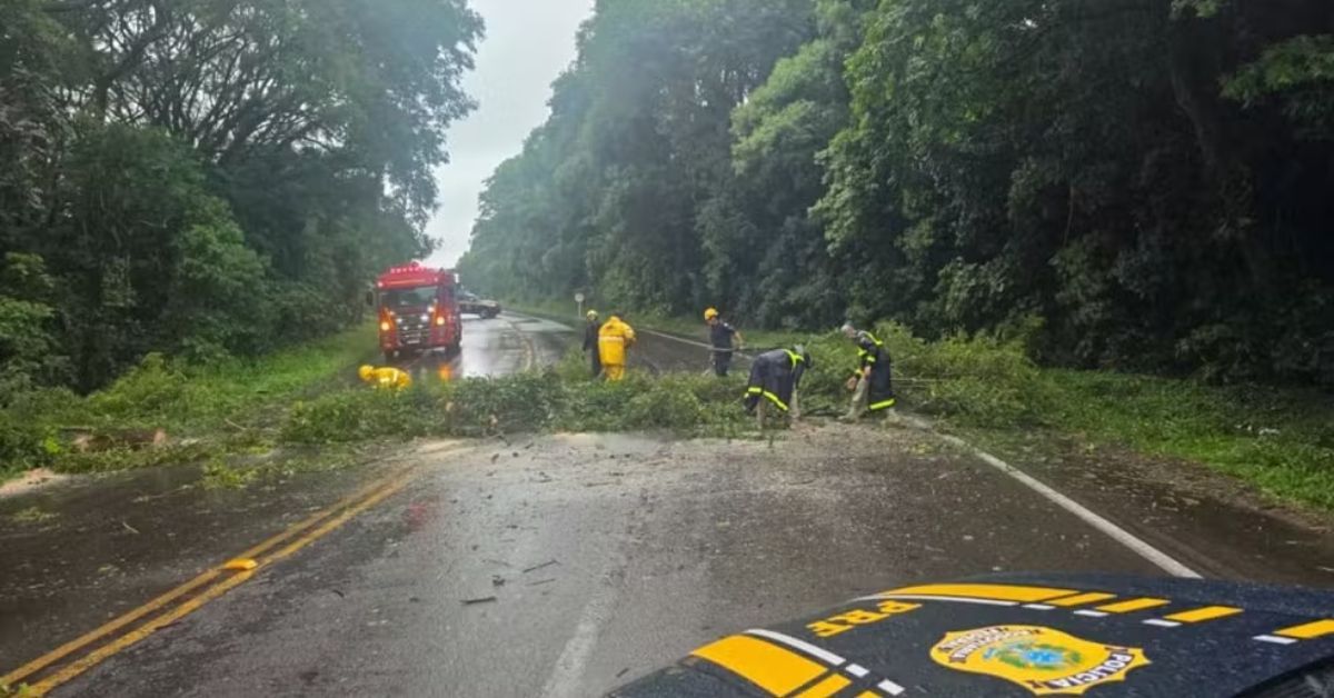 Em Itaara, a BR-158 ficou obstruída após a queda de uma árvore de grande porte. A ocorrência comprometeu o tráfego na rodovia federal, uma das principais vias de escoamento da região.