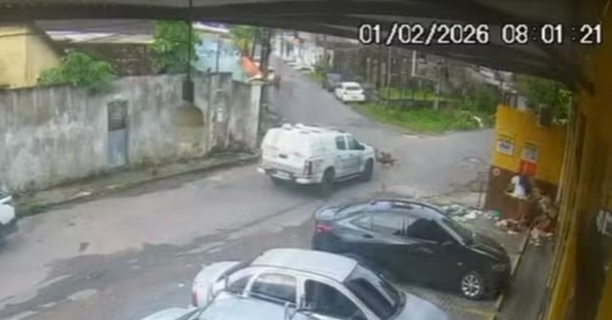 Câmeras de segurança captaram o momento em que a viatura passou pela rua Guaratinga e atingiu os dois animais. Outros cães que estavam na via conseguiram sair do caminho a tempo.