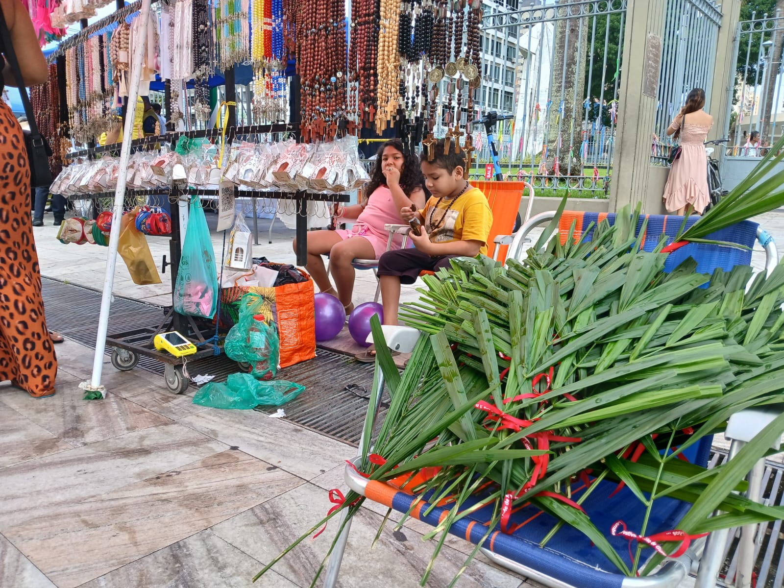 Fiéis garantem os ramos para a bênção inicial da Semana Santa: o comércio na Basílica é marca registrada no Domingo de Ramos. O início da