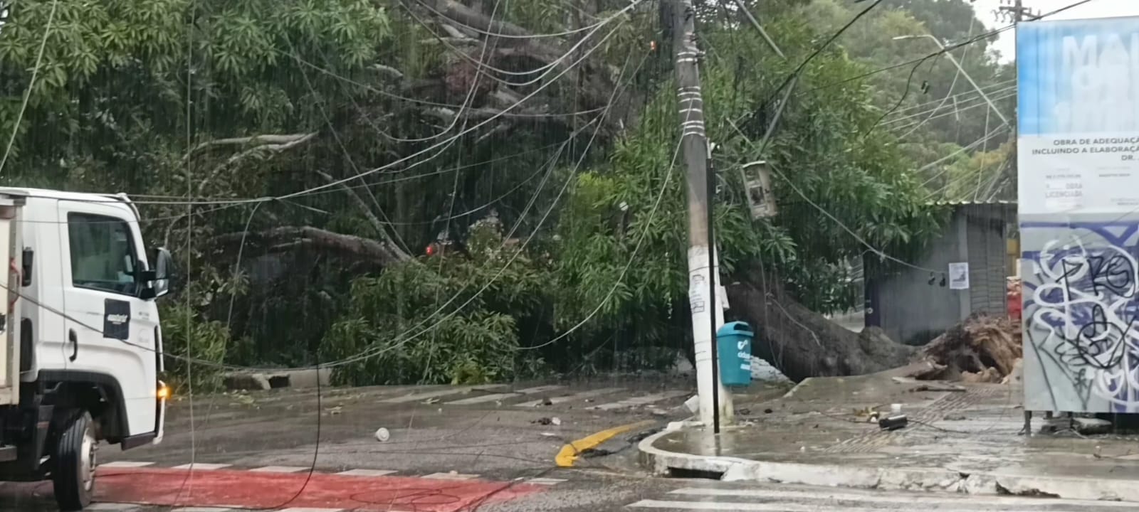 Foto: Celso Rodrigues – Diário do Pará A forte chuva registrada em Belém na manhã deste domingo (19) provocou a queda de uma árvore na