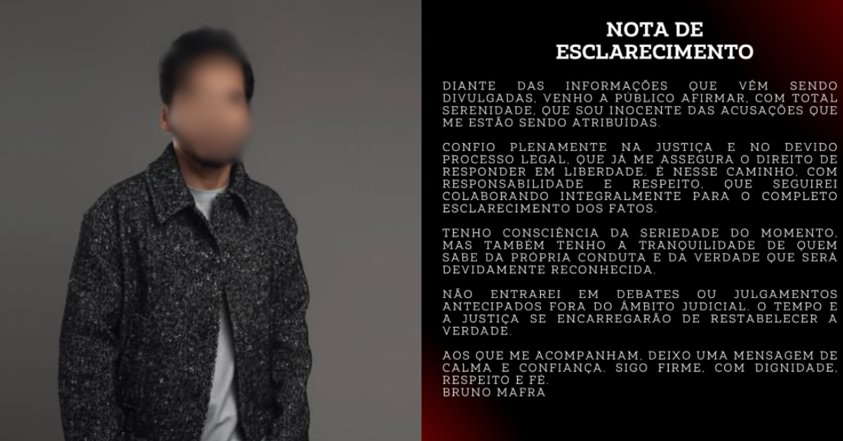 O cantor Bruno Nóbrega Mafra, conhecido no cenário musical de Belém por ser vocalista da banda Bruno e Trio, divulgou uma nota pública na qual