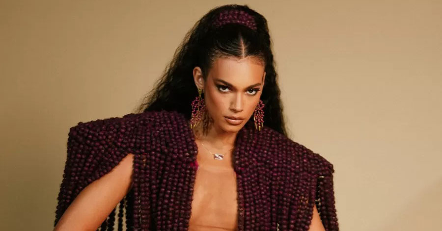 Alane aparece em ensaio com look de sementes de açaí. Veja