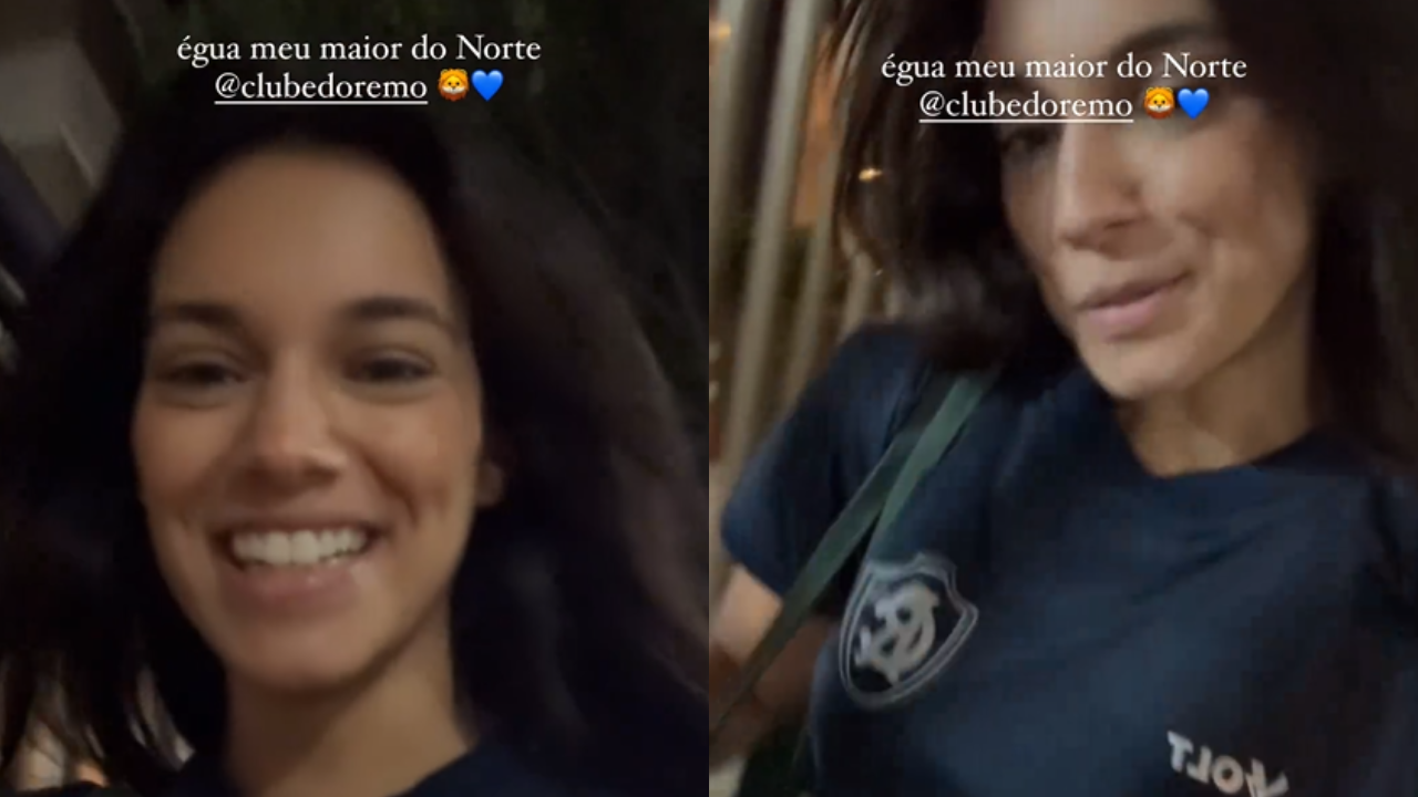 “Eu tô com a minha blusinha aqui do Remo porque ontem o meu time maior do Norte subiu pra série B”, disse ela no vídeo.