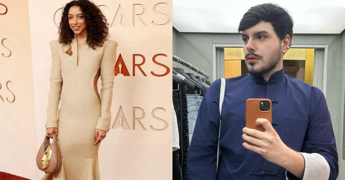 A atriz Alice Carvalho utilizou um vestido desenvolvido pelo estilista Marco Normando para participar da cerimônia do Academy Awards de 2026, o Oscar.