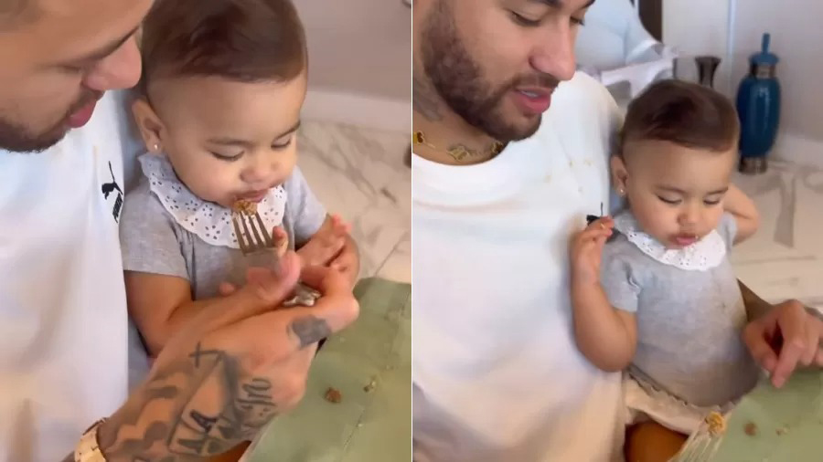 Em um vídeo publicado nos stories, Neymar aparece dando almoço para Mavie. A bebê, cheia de energia, tenta pegar o garfo do pai, mas logo resolve amassar o arroz com as mãos, criando uma divertida bagunça. “Almoço suave”, brincou Neymar, mostrando a cena descontraída.