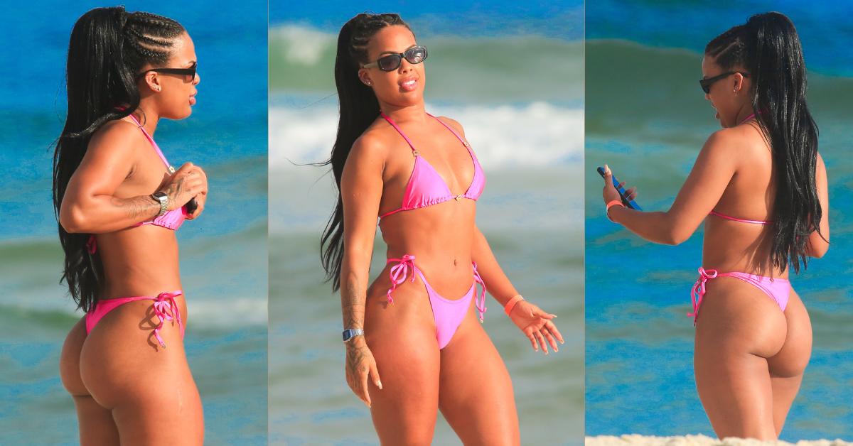 Usando um biquíni rosa no modelo fio dental, Marvvila chamou atenção nas areias com seu corpo escultural e posou para fotos, que logo foram compartilhadas em seu perfil no Instagram. “Que dia lindo”, escreveu na legenda de uma das publicações.