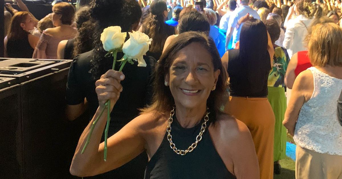 “Nossa mesa era na primeira fileira e ficamos bem perto. Na hora das rosas fui lá pra frente do palco e ele me deu duas rosas na minha mão. Fiquei muito feliz”, disse ela, afirmando que guardará as flores com carinho.