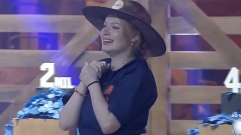 A conquista dos prêmios aconteceu depois de uma dinâmica com disputa de gols entre duas equipes. O time vencedor teve o direto de escolher na sorte o chapéu de fazendeiro. Julia elegeu a caixa de número cinco e saiu vencedora.