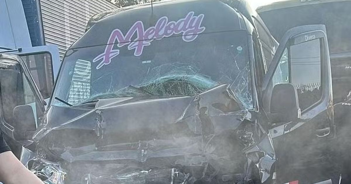 Melody relatou que um ônibus de viagem colidiu com a traseira da van em que ela e sua equipe estavam. Sua irmã, a cantora Bella, também estava no veículo. O acidente ocorreu na pista sentido Rio de Janeiro, na altura do km 290.