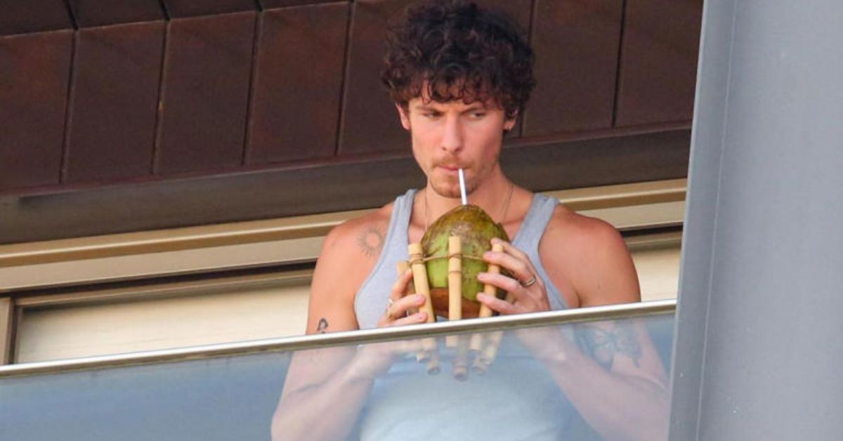 Hospedado em um hotel de frente para a Praia de Ipanema, na zona sul do Rio de Janeiro, o cantor Shawn Mendes, de 26 anos, foi fotografado na manhã desta quinta-feira (19), enquanto tomava uma água de coco na varanda de seu quarto.