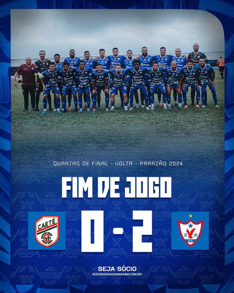 O Águia está nas semifinais do Parazão. O time de Marabá venceu o Caeté por 2 a 0 em Bragança e aguarda a definição do adversário nas semi, que sairá do jogo entre Paysandu e Bragantino, neste domingo, na Curuzu. O Azulão não teve sustos, mas só conseguiu chegar aos gols no fim do jogo, com Bruno Limão aos 45, e Braga, aos 51. O Águia segue firme em busca do bicampeonato estadual.
