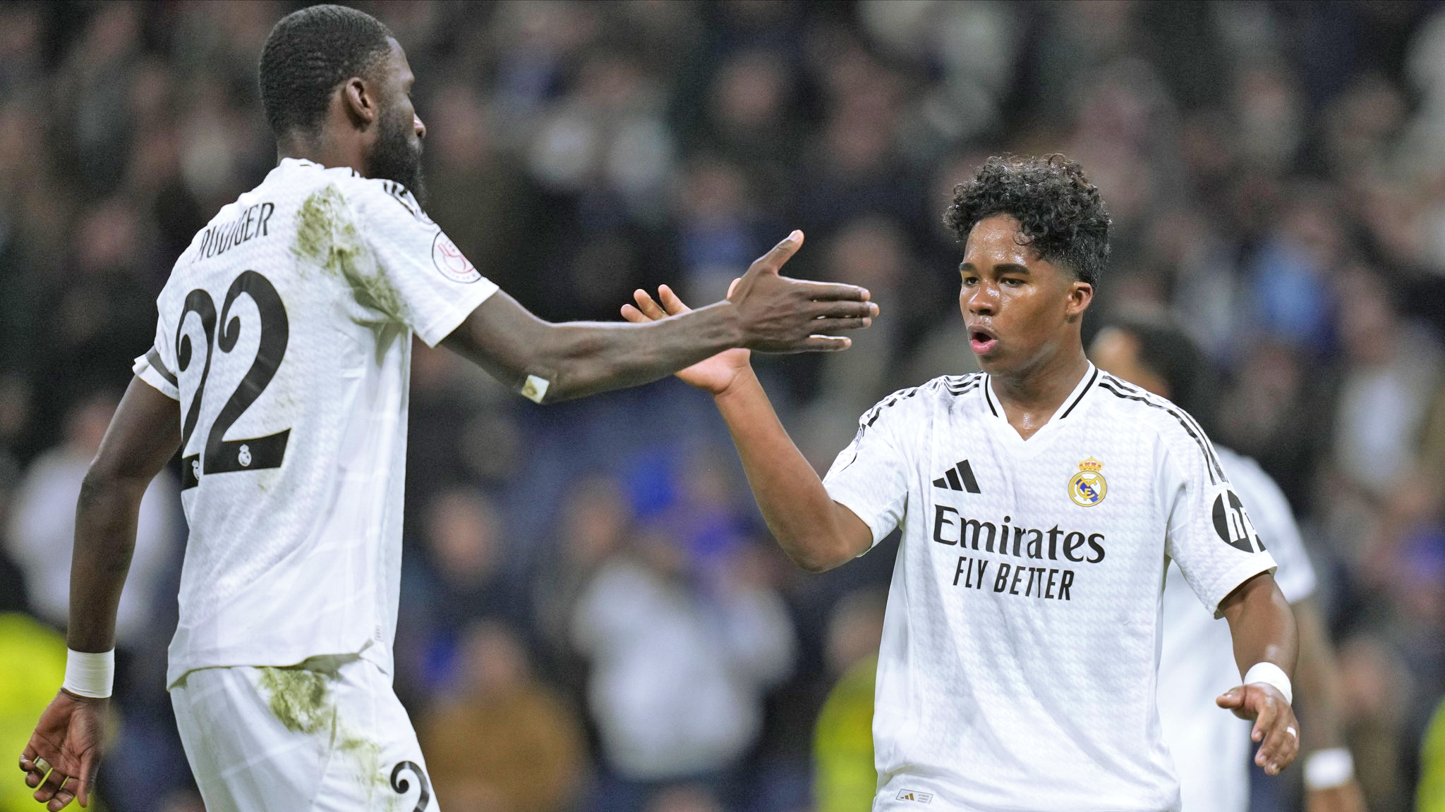 “Eu dedico esses dois gols aos Rüdiger. Nunca me fez um elogio, mas isso para mim não é uma coisa ruim. É bom, porque ele gosta de mim, então me diz o que tenho que fazer, que preciso marcar e correr. Mesmo que não esteja jogando, ele me diz que preciso seguir lutando”, disse Endrick, à Real Madrid TV.