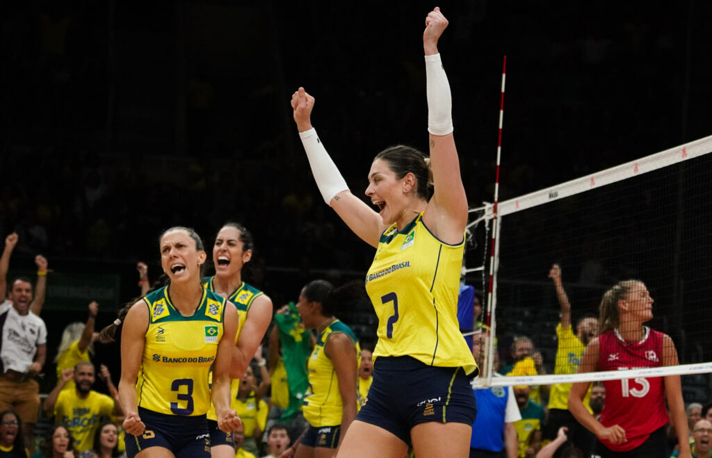 A seleção feminina de vôlei venceu o Canadá por 3 a 1 (26/24, 23/25, 26/24, 25/12), na estreia na Liga das Nações 2024, para delírio da torcida presente no Maracanãzinho, no Rio de Janeiro.