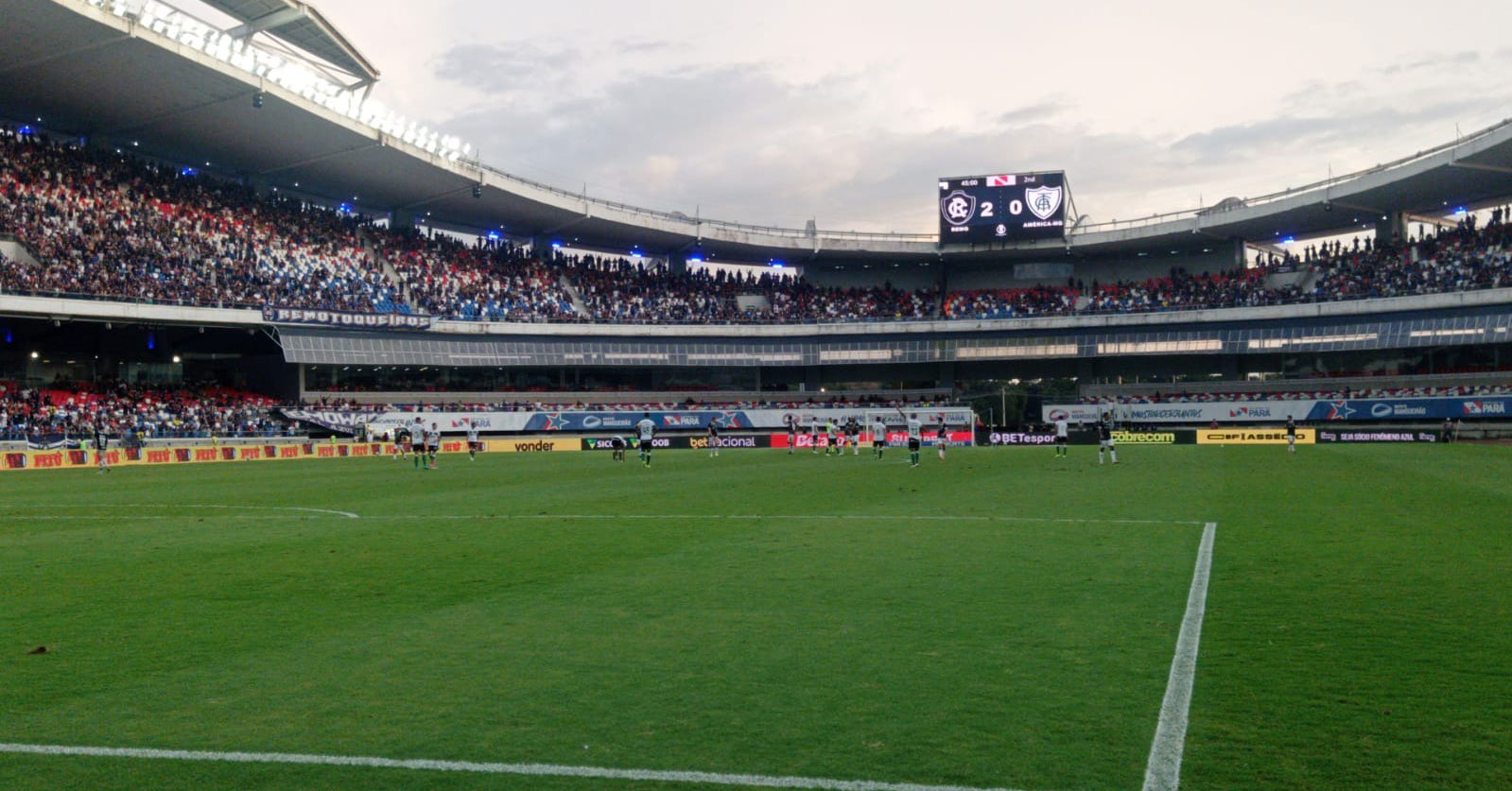 O clima ficou mais tenso aos 38 minutos, quando Pavani cometeu falta na intermediária e levou cartão amarelo. O América-MG manteve a pressão até os acréscimos, quando uma cobrança de escanteio assustou a torcida remista, mas terminou sem perigo real. Aos 48, o árbitro encerrou a etapa inicial após mais uma falta cobrada pelos visitantes.