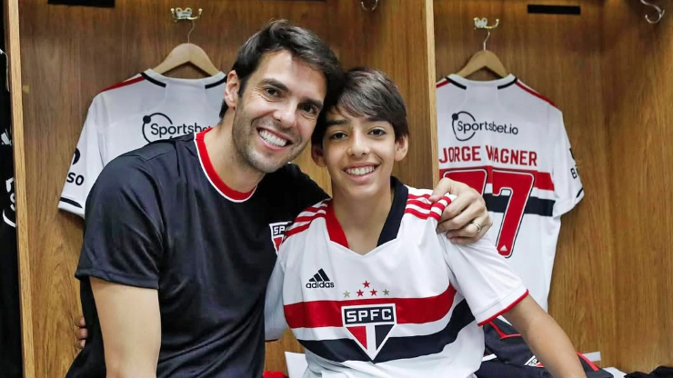 Nas redes, o torcedor comparou os estilos de jogo parecidos de Kaká e do filho. Nas imagens, ele aparece arrancando e dando passes de cabeça erguida.