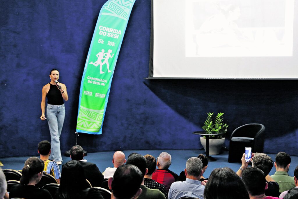 O Serviço Social da Indústria (Sesi-PA) promoveu, na noite de ontem (26), no auditório Albano Franco, na sede da Federação das Indústrias do Pará (Fiepa), a palestra “O Salto de Ouro”, ministrado pela ex-atleta e medalhista de ouro das Olimpíadas de Pequim, em 2008, Maurren Maggi. O evento faz parte da programação de promoção da Corrida e Caminhada do Sesi, marcada para acontecer no dia 1º de maio, Dia do Trabalhador.