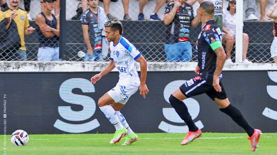 O confronto era equilibrado, com pouca criação e muito truncado. O Fantasma buscava ditar o ritmo, mas tinha dificuldades quando passava do meio-campo por conta da boa marcação pressão do Papão no setor.