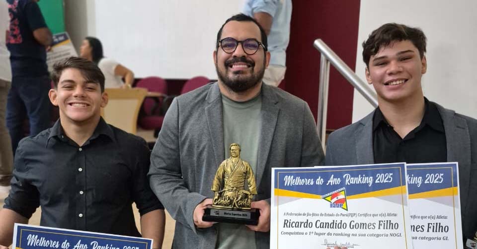 Entre os homenageados está Bruno da Silva Oliveira, escolhido como melhor professor de jiu-jitsu do Pará em 2025. O reconhecimento destaca o trabalho de formação de atletas e a contribuição para o fortalecimento da modalidade no estado.