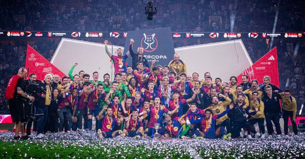 Com o 5 a 2 no placar, o Barcelona se consagrou campeão da Supercopa da Espanha de 2025, deixando claro seu domínio sobre o rival e garantindo mais uma conquista importante em sua rica história.