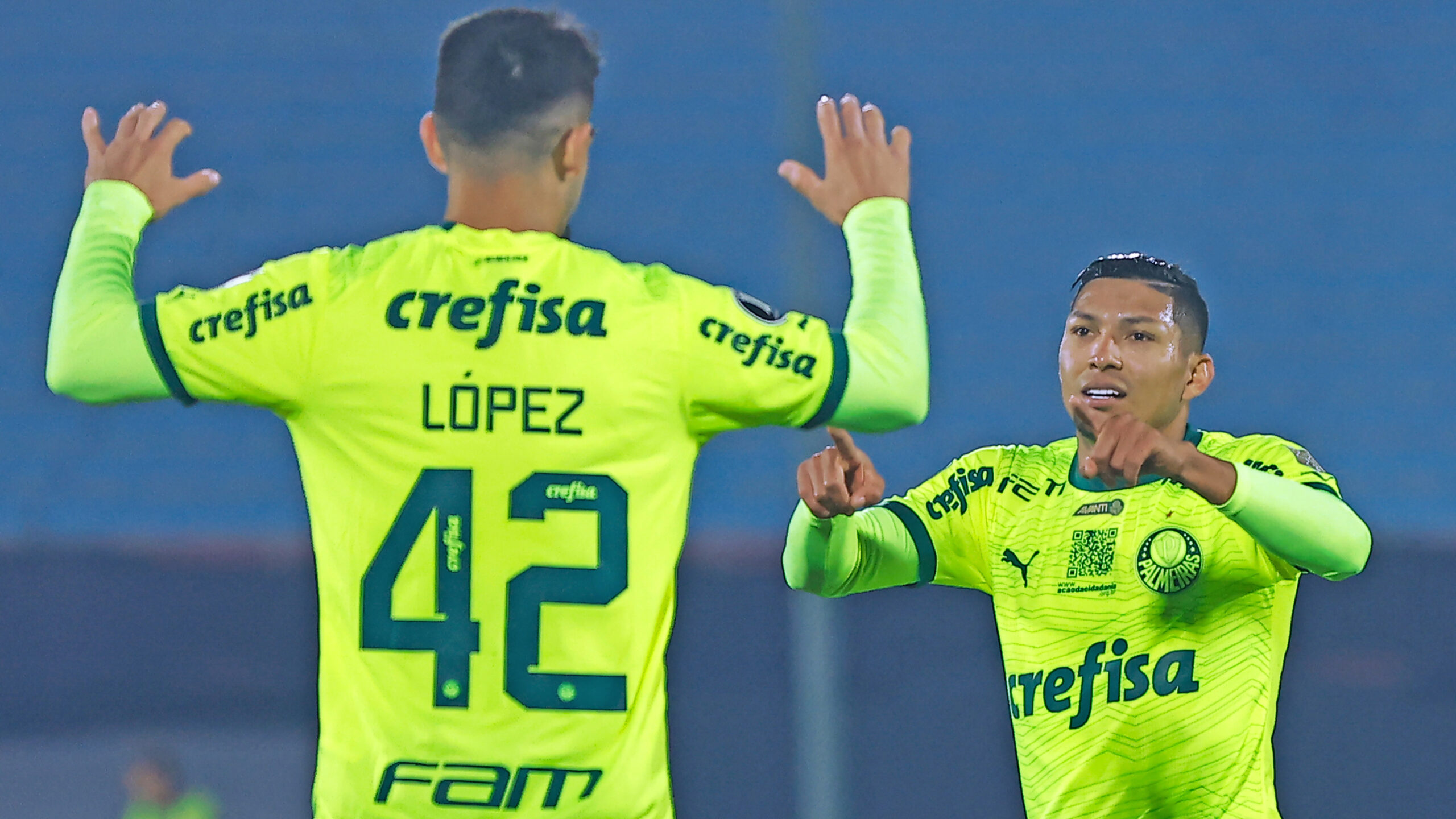 LIVERPOOL-URULentinelly; Amaro (Nicola), Rosso, Matías De Los Santos, Enzo Martínez e Cayetano; Lemos (Renzo Machado), Barrios e Garcia (Diego Rodríguez); Ocampo (González) e Luciano Rodríguez. Técnico: Emiliano AlfaroPALMEIRASWeverton, Marcos Rocha, Murilo, Gustavo Gomez e Piquerez; Aníbal Moreno (Zé Rafael), Gabriel Menino e Raphael Veiga (Mayke); Lázaro (Rony), Estêvão (Luís Guilherme) e Endrick (Flaco López). Técnico: Abel FerreiraEstádio: Centenário, em Montevidéu (Uruguai)Árbitro: Andrés Rojas (Colômbia)Assistentes: Jhon Gallego (Colômbia) e Roberto Padilla (Colômbia)VAR: David Rodriguez (Colômbia)Cartões amarelos: Gabriel Menino, Endrick (Palmeiras)Gols: Raphael Veiga (43’/1°T), Raphael Veiga (25’/2°T), Endrick (36/2°T), Rony (46’/2°T), Gustavo Gómez (50’/2°T)