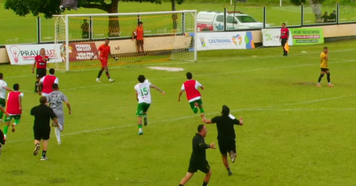 Mas, aos 38 minutos, mais um pênalti na partida. Após bola lançada na área, o VAR identificou um toque de mão de um jogador tunante. Paulo Rangel novamente pegou a bola e bateu firme, deslocando o arqueiro cruzmaltino e empatando de novo a partida. Castanhal 3×3 Tuna Luso.