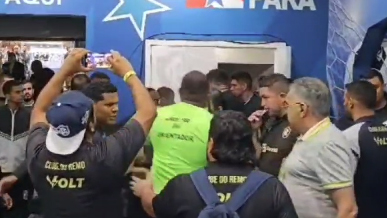 O Clube do Remo não engoliu bem a derrota por 2 a 0 para o Paysandu, em clássico válido pela ida da final do Campeonato Paraense. O Leão ficou na bronca com a arbitragem de Bráulio da Silvia Machado (FIFA).Na partida, os azulinos tiveram Nathan e Paulinho Curuá expulsos. Além disso, cobraram cartões vermelhos para o volante do Paysandu João Vieira, e um pênalti com expulsão de Wanderson em lance com Ícaro.Conteúdo Relacionado:Paysandu vence o Remo por 2 a 0 e abre vantagem na finalRangel critica arbitragem e diz que Remo precisa acreditarJean Dias faz alerta e quer Paysandu com “os pés no chão”No vídeo divulgado pela página “Meu Poderoso Leão”, é possível ver um integrante do Clube do Remo, próximo ao executivo de futebol Sérgio Papellin, xingando o árbitro de”Safado! Pilantra! Vai tomar no teu c*! Filho da p*ta! Vai te f*der, c*aralh#! Dá logo a taça para eles (Paysandu), filho da p*ta!”, disse enquanto era afastado por segurança e foi embora para o vestiário azulino.Confira o vídeo: