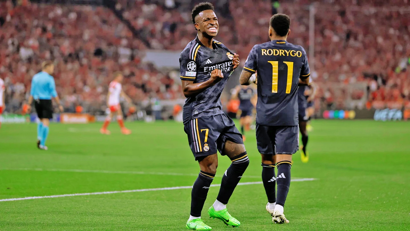 O atacante brasileiro Vini Junior continua sendo decisivo para o Real Madrid e foi o nome do time espanhol na semifinal da Liga dos Campeões da Europa.Isso porque o jogador brasileiro marcou dois gols e evitou a derrota do time merengue diante do Bayern de Munique, nesta terça-feira (30), na Alemanha. O placar de 2 a 2 deixa a disputa aberta para o jogo de volta, semana que vem na Espanha.Foi dele o primeiro gol do jogo, aos 24 minutos do primeiro tempo e a vantagem do Real sumiu em menos de cinco minutos graças aos gol de Sané e Harry Kane, que virou para o Bayern em cobrança de pênalti.