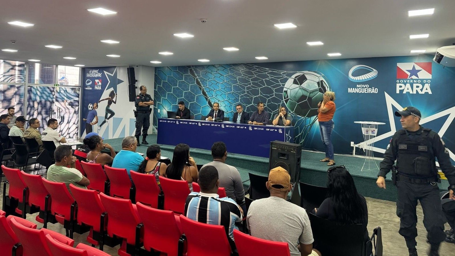 A reunião foi conduzida pelo promotor de Justiça José Maria Gomes dos Santos e contou com a presença de representantes da Secretaria de Estado de Esporte e Lazer, da Federação Paraense de Futebol, da Polícia Civil, da Polícia Militar, do Corpo de Bombeiros, da Diretoria do Mangueirão, da empresa de segurança Mamute, do Paysandu Sport Club e dos próprios ambulantes.