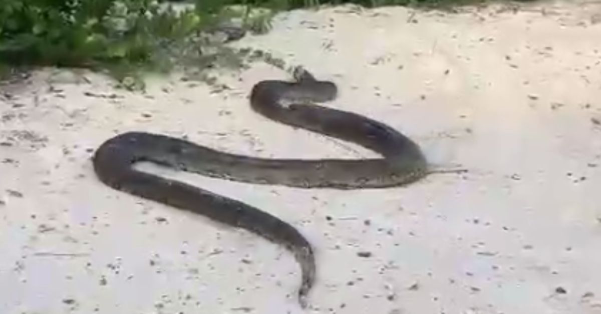 Em Salinópolis, no litoral do Pará, banhistas e turistas flagraram uma cobra gigante circulando livremente nos arredores da praia do Atalaia, um dos destinos mais badalados do veraneiro paraense.