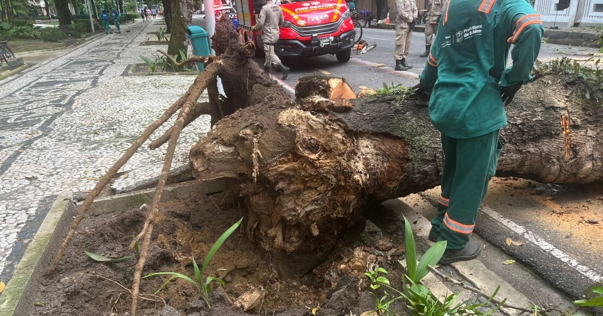 Na manhã deste sábado (01), uma árvore da espécie mangueira caiu na rua dos Mundurucus, entre a travessa Padre Eutíquio e a avenida Serzedelo Corrêa, na praça Batista Campos, em Belém. O incidente ocorreu por volta das 8h15.