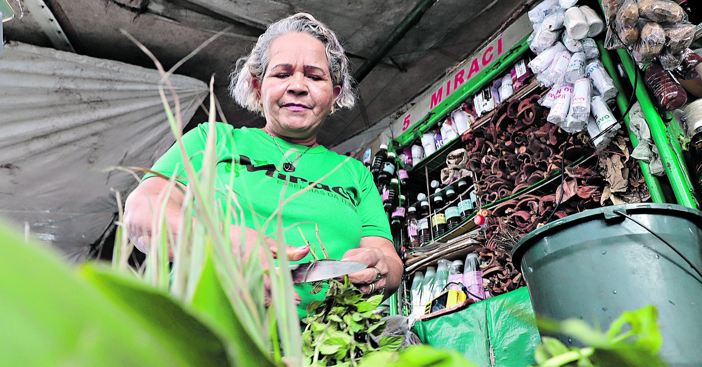 - “O banho se toma da cabeça aos pés e depois não tira o excesso, tem que deixar as ervas no corpo. Toma o banho e veste uma roupa limpa, geralmente a que vai usar na virada do ano. É necessário que enquanto toma banho você mentalize coisas boas porque não adianta comprar um banho e não acreditar. É como eu sempre digo, 50% é o poder do banho e 50% é sua fé naquilo”, afirma a feirante, de 60 anos.