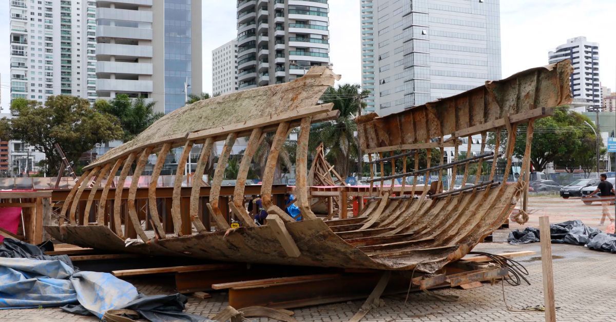 A embarcação encontrada em meio às obras do Parque Linear da Doca, no centro de Belém, passará por um processo de restauração e conservação que vai durar cerca de 150 dias úteis. A informação foi confirmada durante coletiva, na manhã de ontem (17). A estrutura foi desenterrada na última terça-feira (14) e encontra-se no estacionamento de uma faculdade privada, localizada próximo ao local do achado arqueológico, na avenida Visconde de Souza Franco, onde será montado um laboratório para o restauro.