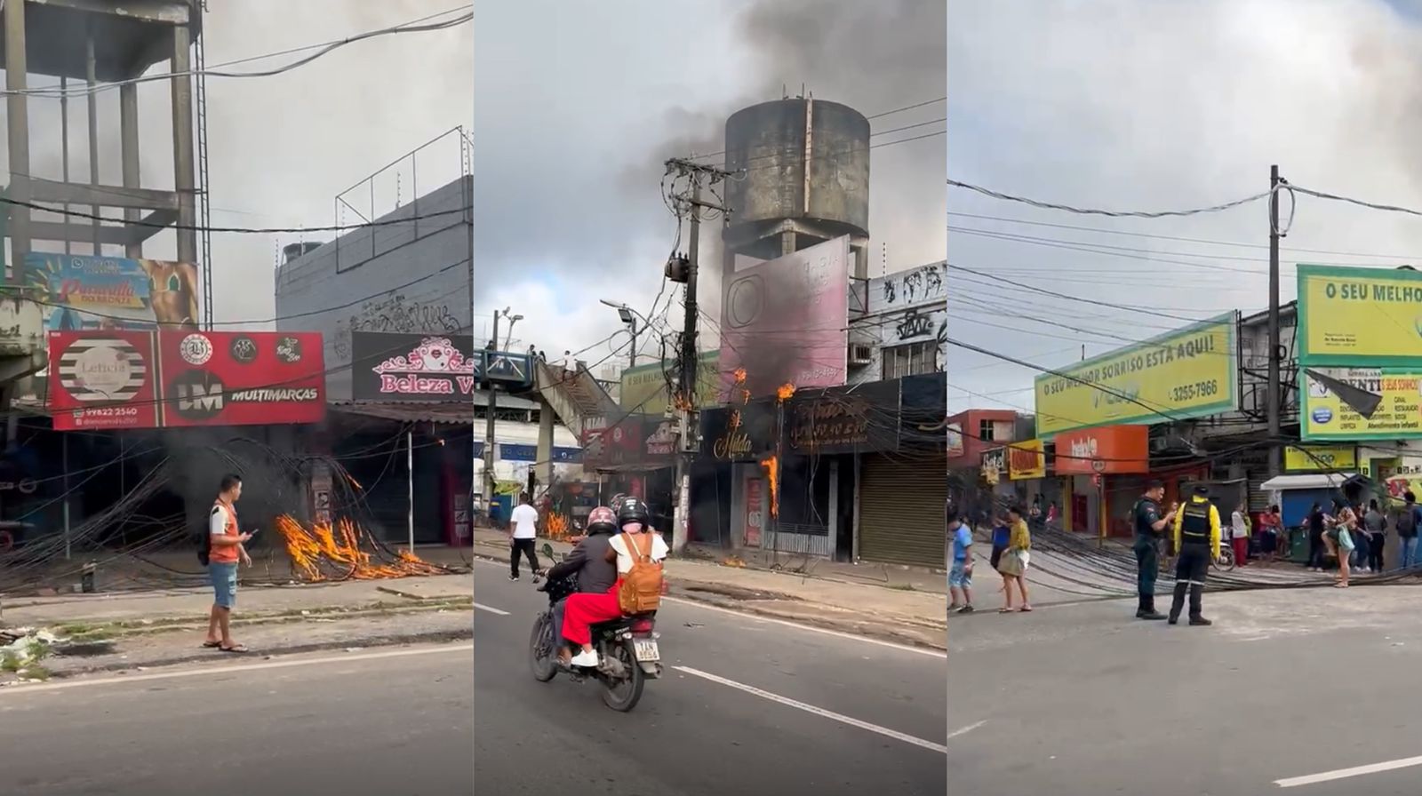 Na manhã desta sexta-feira (7), moradores registraram a ocorrência de fogo em fios de alta tenção na rodovia BR-316, em Ananindeua, na Região Metropolitana de Belém. Nas imagens feitas por um condutor de veículo que trafegava pelo local, é possível visualizar os cabos estavam cobertos de fogo e uma parte estava arriada sobre a calçada.