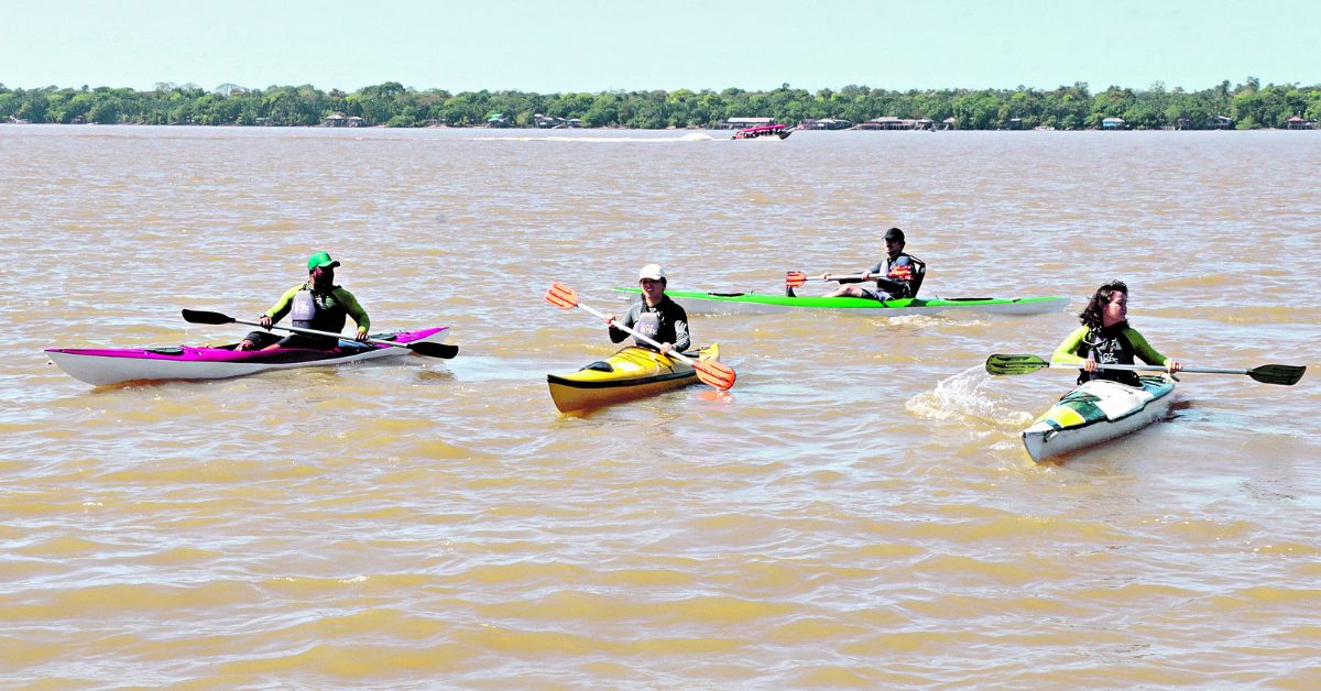 Os rios que cercam a cidade de Belém também são atrativos para quem pretende curtir o veraneio na capital paraense. No último sábado (13), o publicitário Edson Maia, 39 anos, experienciou pela primeira vez a prática de canoagem, no Espaço Náutico Marine Club.
