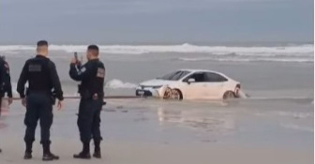 Carro engolido pelo mar, em Salinópolis, é rebocado pela PM