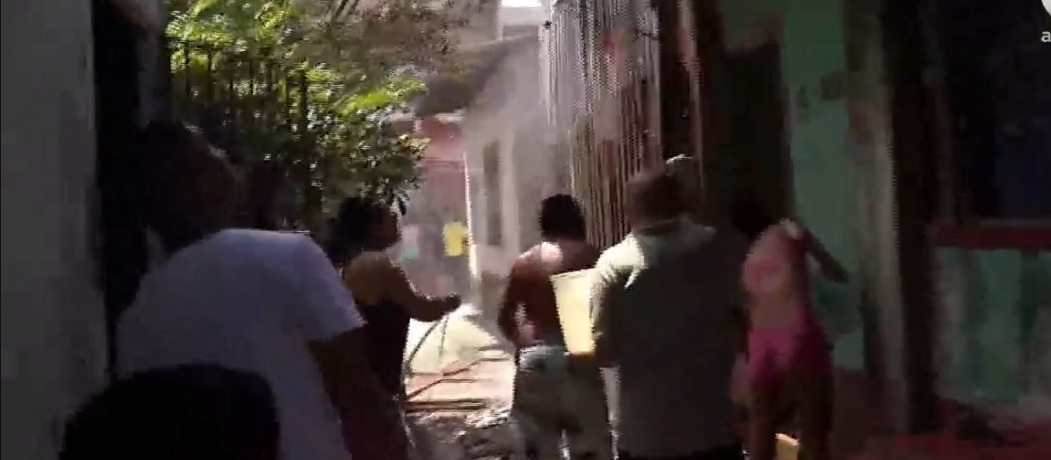 De acordo com os demais moradores que estão no local, e falam com a reportagem, há riscos de explosões devido a existência de botijão de gás na área. Um barulho semelhante foi ouvido.