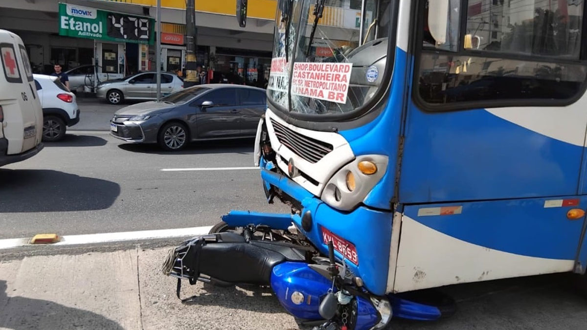 Um grave acidente de trânsito foi registrado na tarde desta sexta-feira (24) em Belém, quando um ônibus de transporte coletivo colidiu com uma motocicleta na via expressa da Avenida Almirante Barroso.