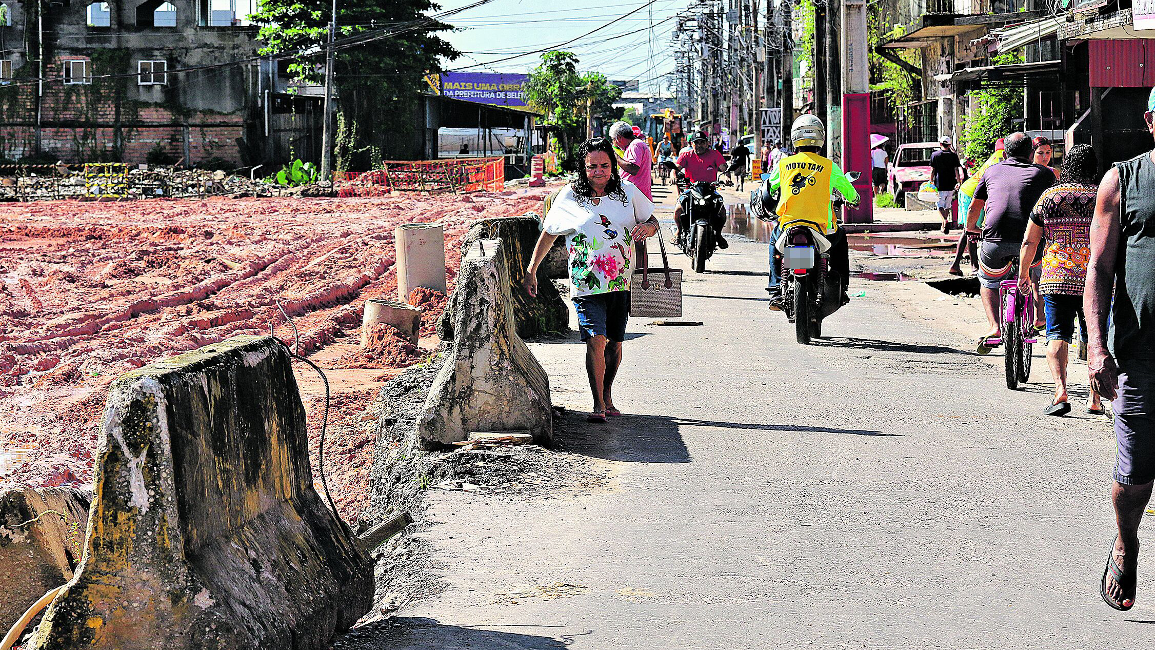 “Ficou intransitável e os clientes não conseguem acessar o ponto de açaí. Os carros sobem a calçada para passar na via, inclusive tive um problema com as sacas de caroços de açaí por conta disso. No horário de meio-dia é um caos aqui, porque é caminhão, carro e moto querendo passar ao mesmo tempo e a via está reduzida”, acrescenta.