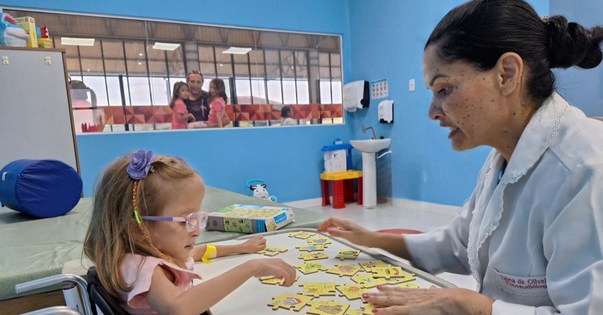 Acompanhada por uma equipe multiprofissional, Maitê Rocha tem em seu cronograma de reabilitação a “Terapia Individual” conduzida pela especialidade em Fonoaudiologia que oferta à criança, entre as atividades, o quebra-cabeça de alfabeto que ajuda no sistema cognitivo, concentração, memória, tolerância, e estimula a linguagem oral para reconhecer o alfabeto por meio de figuras; e o giro mágico que oportuniza a concentração, tolerância, conhecimento de cores e tamanhos dos objetos.