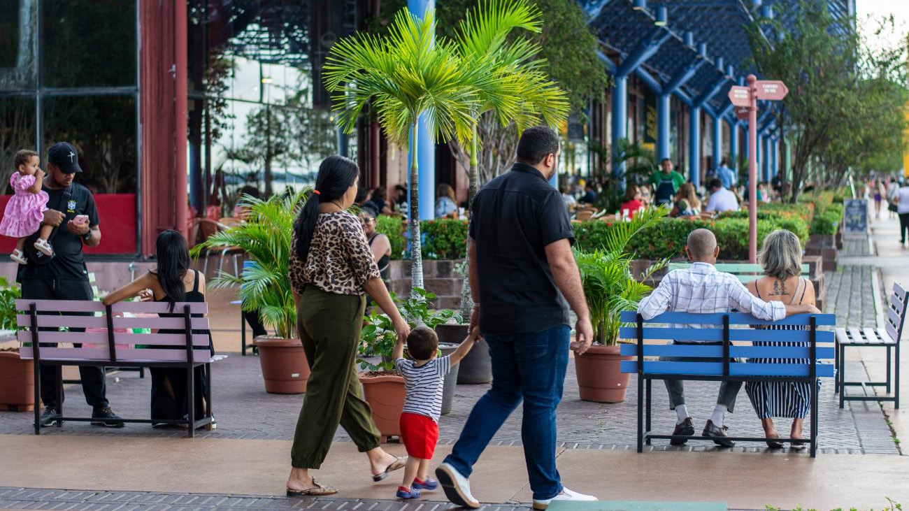 Além disso, o local conta com lojas e quiosques que disponibilizam diversas opções de presentes. A orla de 500 metros complementa o passeio em família, proporcionando a chance de apreciar o pôr-do-sol na Baía do Guajará.