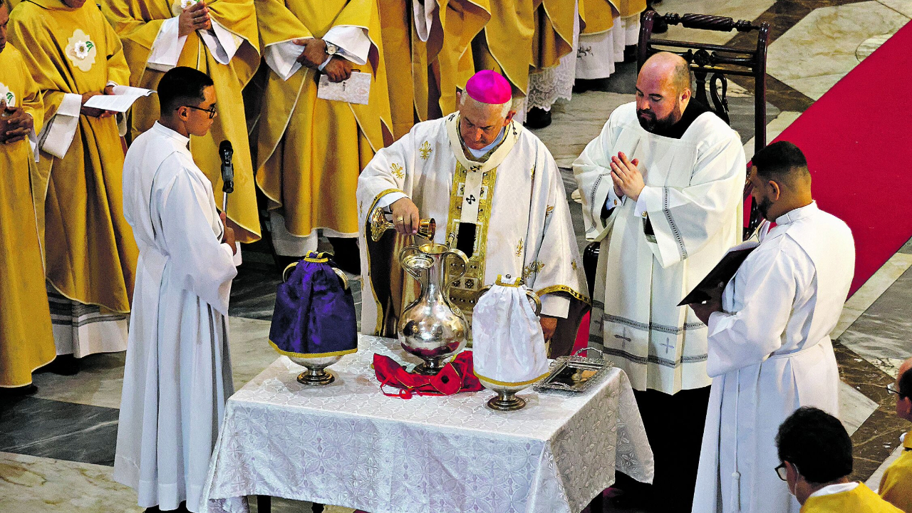 Para o estudante Reynan Silva, 25 anos, a Missa do Crisma é considerada uma das celebrações mais solenes e importantes do ano litúrgico. “É o momento de agradecer e louvar a Cristo pela instituição da Eucaristia, dom do amor de Cristo à sua Igreja, memorial do sacrifício da cruz”, comenta.