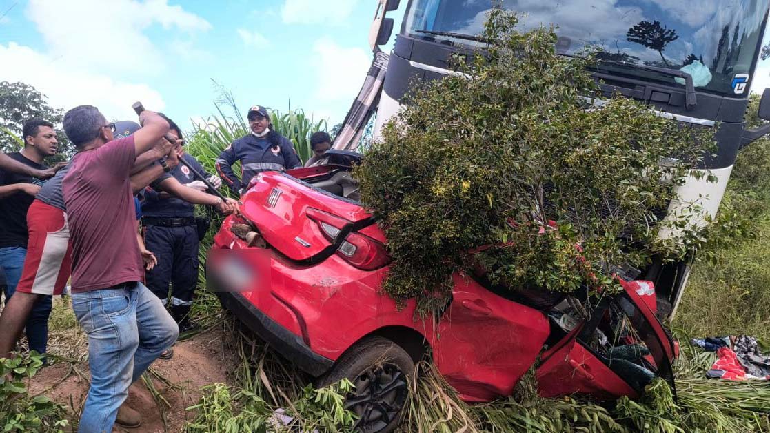 De acordo com as equipes de socorro, o acidente envolveu uma carreta e um veículo de passeio. Com a violência da batida, o automóvel menor foi totalmente destruído, evidenciando a gravidade do ocorrido.