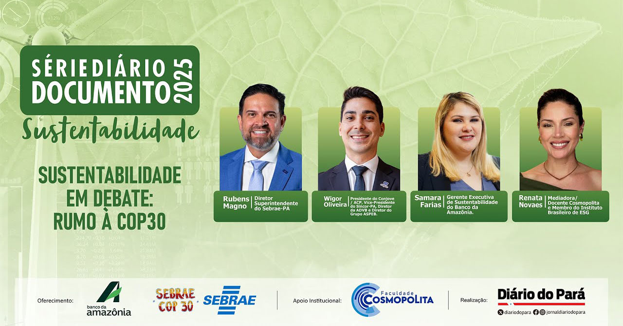 Nesse contexto, a série Diário Documento 2025 Sustentabilidade, do Diário do Pará, promove uma live que debate os desafios e os legados da COP30 em Belém. O encontro vai ao ar no Canal do DOL (Diário Online) no YouTube nesta terça-feira (21), às 19 horas, reunindo especialistas que discutem o futuro sustentável do planeta e o papel do Pará nesse movimento global.