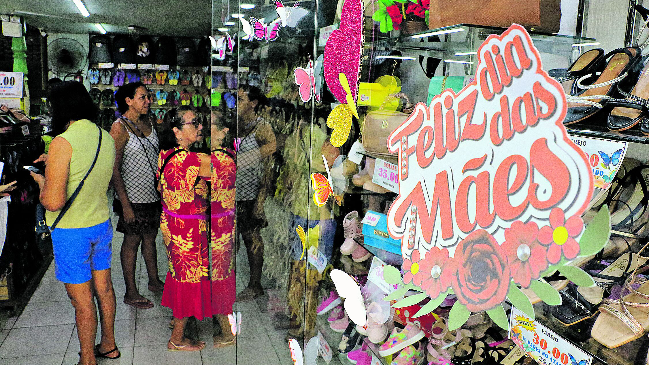 Ele diz que o perfil da mãe atual mudou. “As mães buscam agora satisfação pessoal, com sapatos, roupas, bolsas e bijuterias. Aqui na loja, oferecemos várias opções de presentes. Os saltos altos, as bolsas, as mochilas e as rasteirinhas são as opções que estão tendo mais saída na loja. Temos presentes para todos os bolsos, inclusive saltos altos a partir de R$40”, garante.
