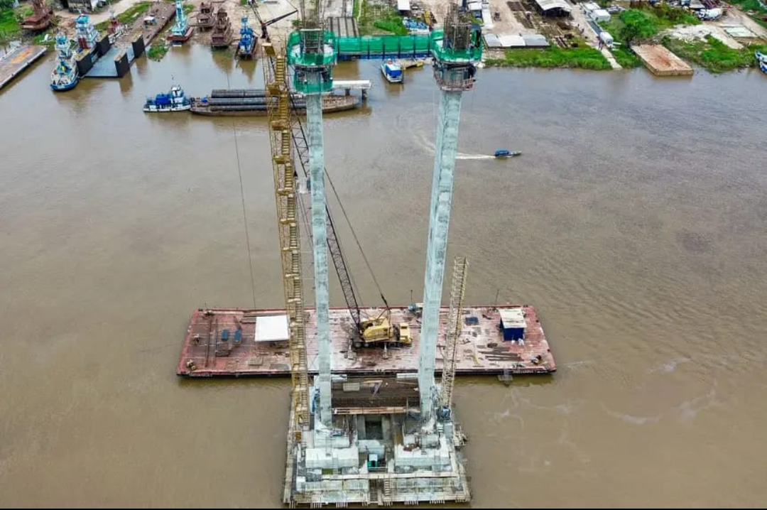 A construção da nova ponte estaiada entre os distritos de Icoaraci e Outeiro, em Belém, registra avanço das obras, com 65% dos serviços concluídos. Investimento do Governo do Pará, por meio da Secretaria de Estado de Infraestrutura e Logística (Seinfra), a ponte é considerada um marco para o desenvolvimento e integração do Estado, com os objetivos de potencializar a mobilidade, infraestrutura, agilidade e o turismo na região.