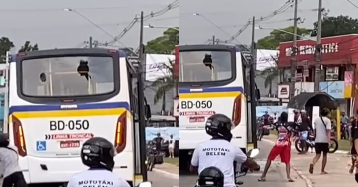 Segundo informações compartilhadas por internautas, o apedrejamento começou após o coletivo passar por cima da bicicleta de um jovem que usava o meio de locomoção para fazer entregas.